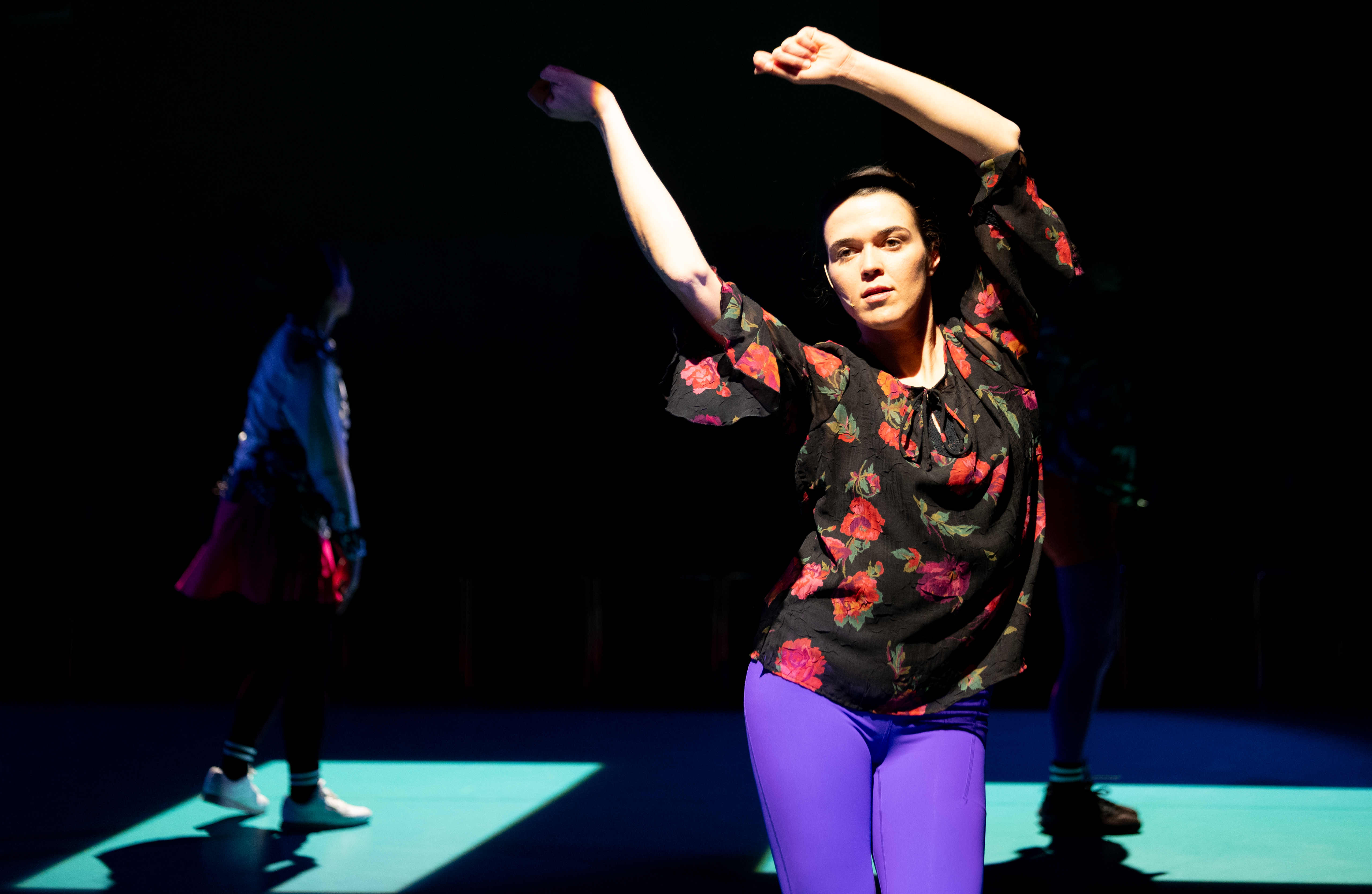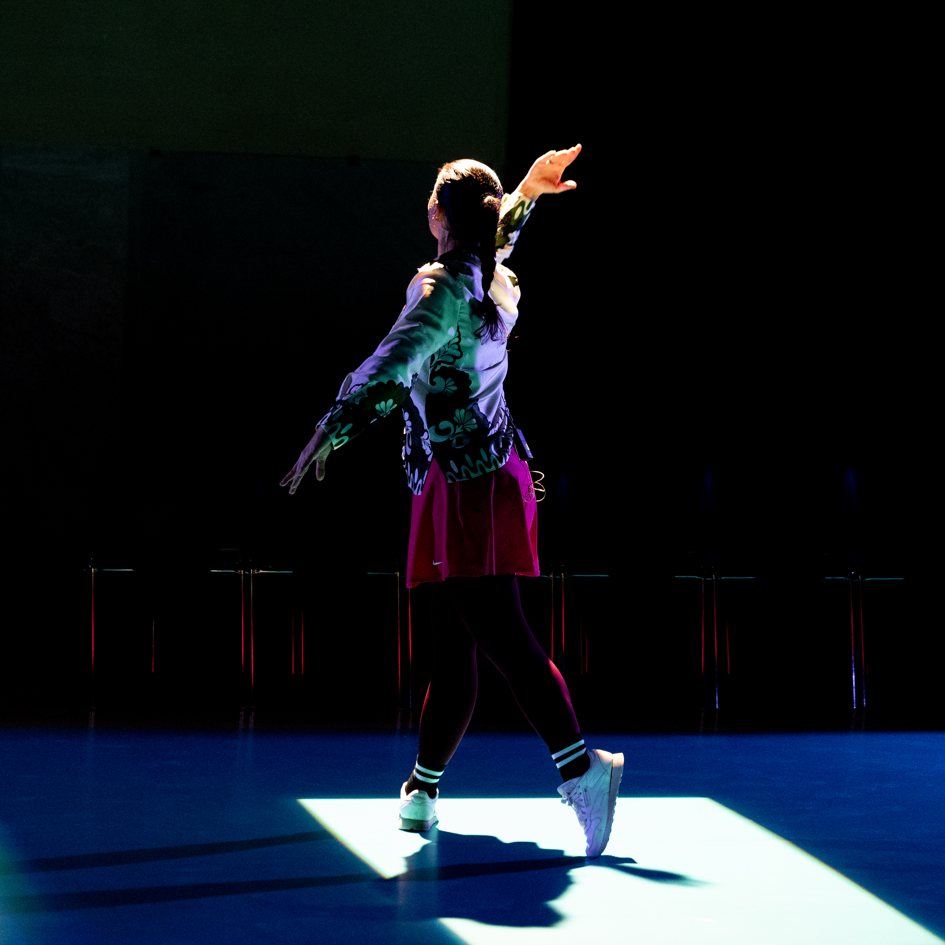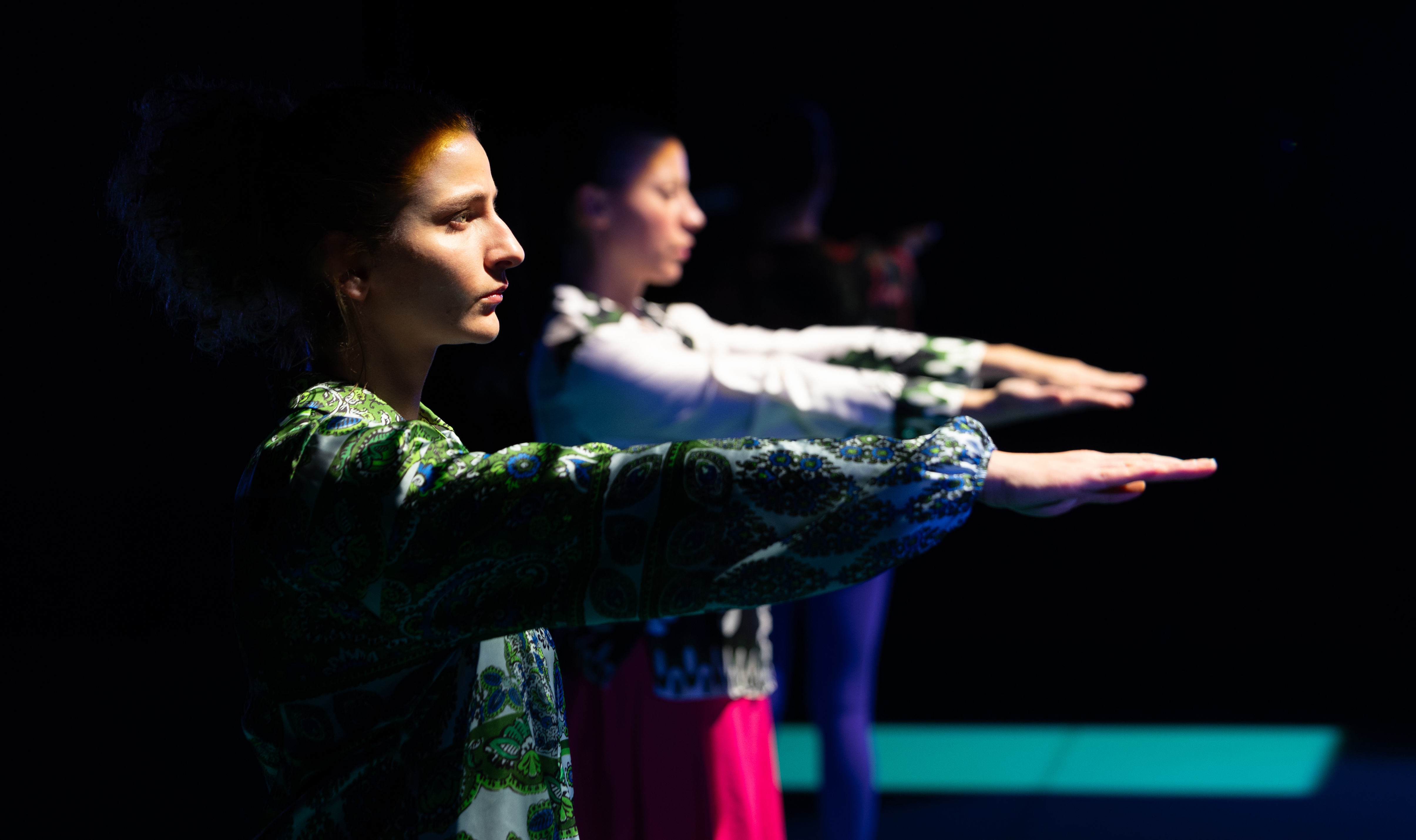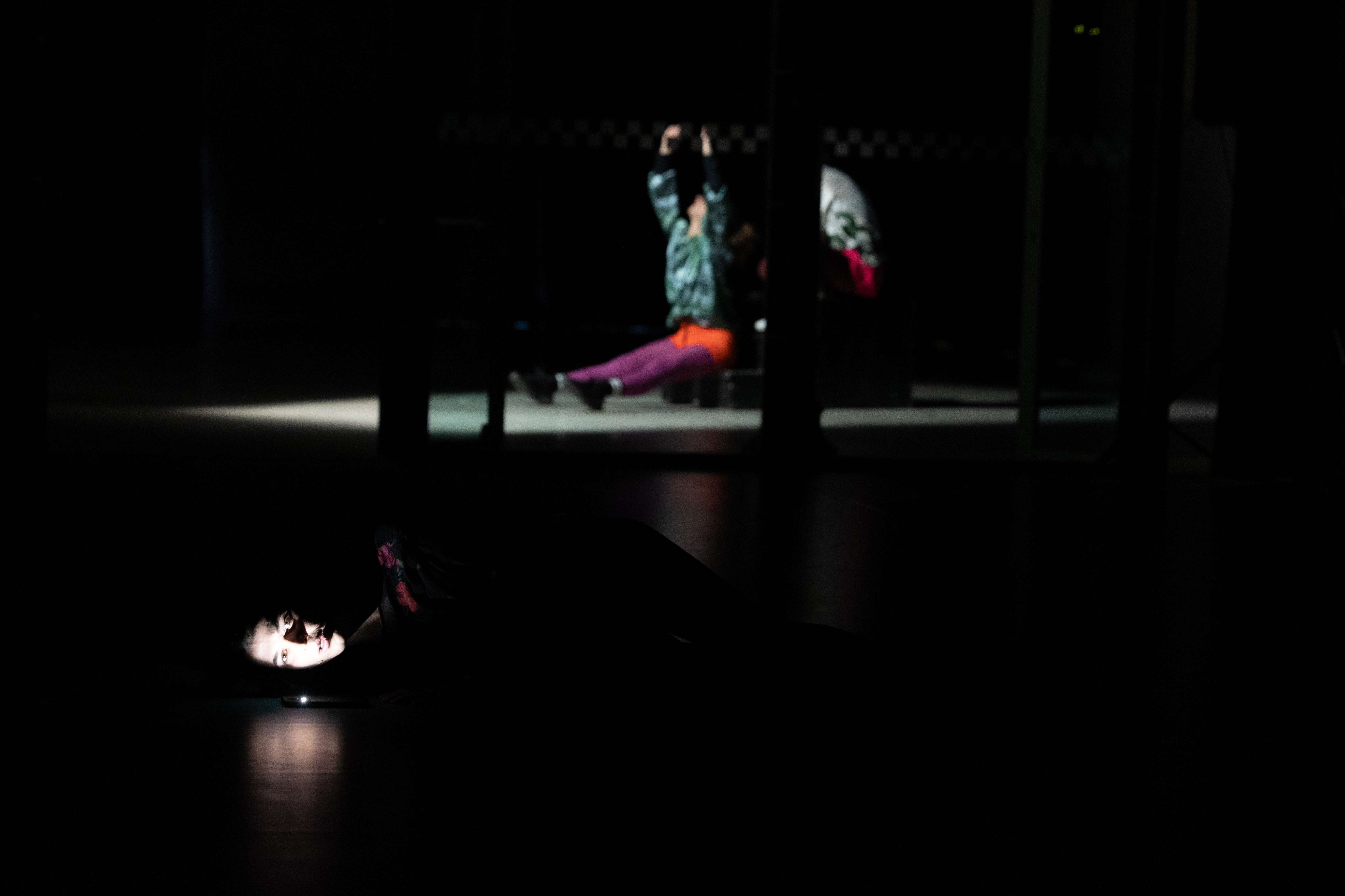 Investigating the phenomenon of scrolling as a somatic posture of attention and as aesthetical attitude of the scenic action, the performance enacts and devises three algorithmic propositions –one for each performer’s Tik Tok account – consisting of contents extracted from the “For You” section of the social network platform Tik Tok. A succession of fixed movement-units, operating through excess without a center, put in dialogue with the musical repertoire accompanying the performance, drawn from the tradition of the baroque suite, a musical form conceived for code-dances or conceptual-dance.
